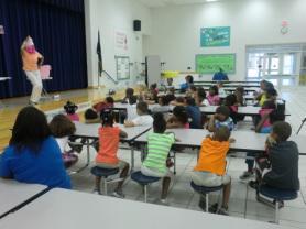 The audience is having an incredible time increasing their reading skills while riding in this literacy carpool. The Storytelling Queen is the driver and tells stories that give the audience an opportunity to practice story comprehension skills while increasing their reading levels.
